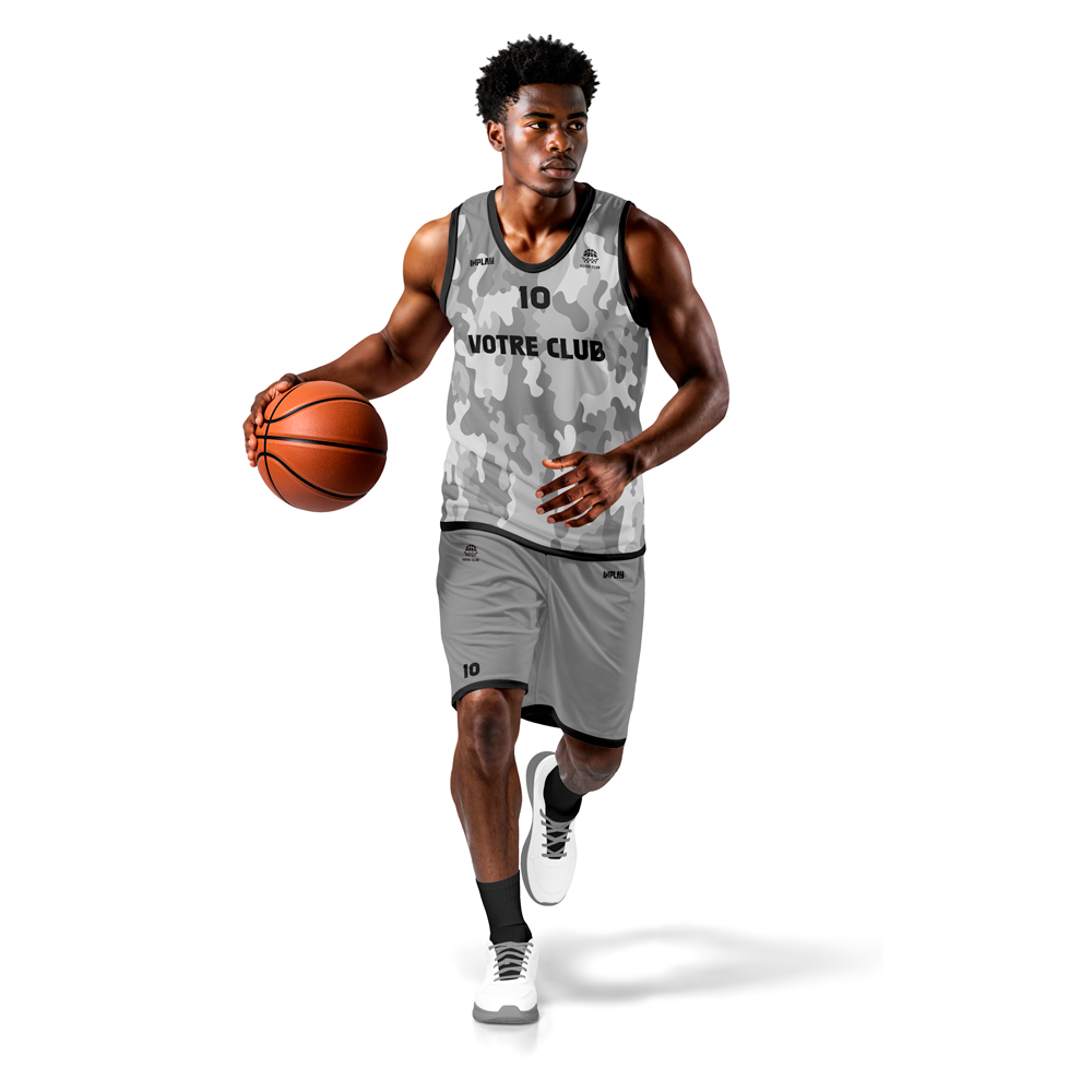 Cette tenue de basket personnalisable est conçue pour allier confort, performance et style unique. Pour obtenir votre maquette personnalisée en moins de 24 heures, ajoutez vos couleurs, votre logo, votre police d’écriture souhaitée pour un look 100% sur mesure.